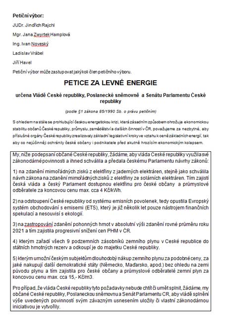 Petice za levné energie