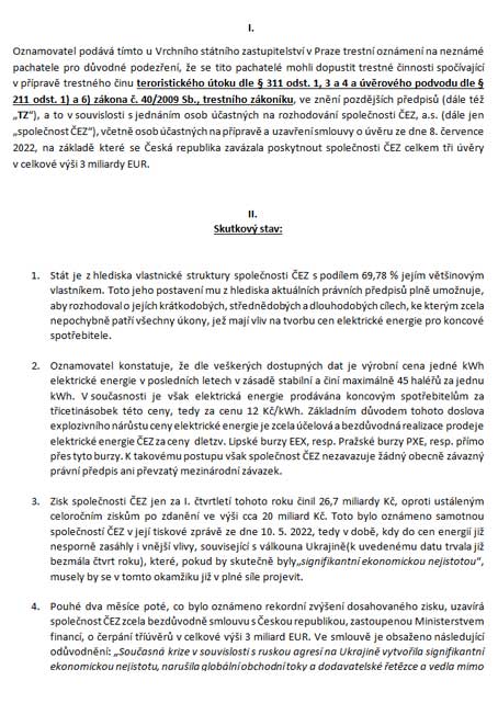 Trestní oznaméní - ČEZ