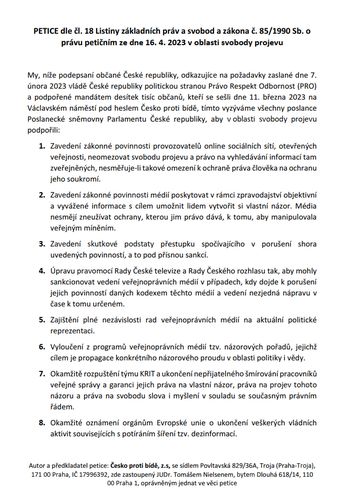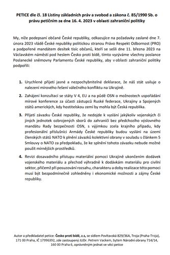 Petice prosím zasílejte obyčejně (ne doporučeně) na adresu: