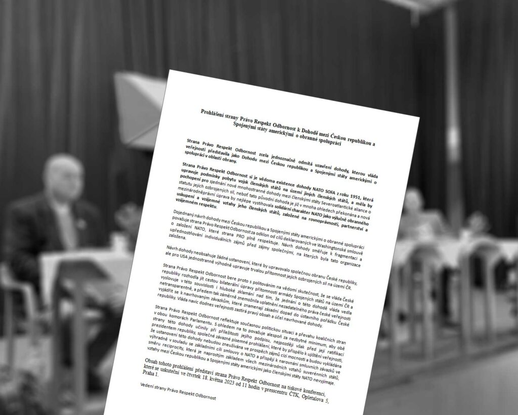 Prohlášení strany Právo Respekt Odbornost k Dohodě mezi Českou republikou a Spojenými státy americkými o obranné spolupráci
